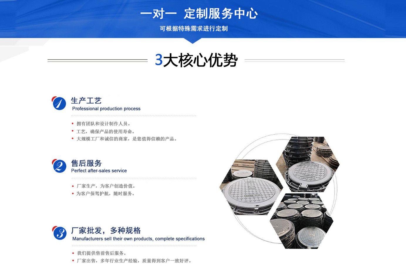 山東聊城健暉鑄造有限公司主營各種球墨鑄鐵井蓋,球墨鑄鐵防盜井蓋,球墨鑄鐵方形井蓋,球墨鑄鐵井蓋廠家等產(chǎn)品,可廣泛應(yīng)用于市政建設(shè)、軌道交通設(shè)施、城市園林綠化、安防配套設(shè)施、石油化工等諸多領(lǐng)域。 產(chǎn)品采用良好的工藝流程,以確保產(chǎn)品質(zhì)量的穩(wěn)定性:以良好的檢測設(shè)備,確保質(zhì)量的可靠性。廣泛應(yīng)用于國內(nèi)外城市的市政建設(shè),通信,自來水,消防,園林,環(huán)保等行業(yè),產(chǎn)品大獲贊譽(yù)! 我們堅(jiān)持“質(zhì)量為本、用戶至上、科技創(chuàng)新、科學(xué)管理”的經(jīng)營方針。 面向未來,我們積極響應(yīng)新時(shí)代的號召,走“一帶一路”、堅(jiān)持“綠色環(huán)?!钡膰曳结樥?,秉承“安甄致選,普利天下”的企業(yè)理念,共同鑄就新時(shí)代的輝煌篇章。...